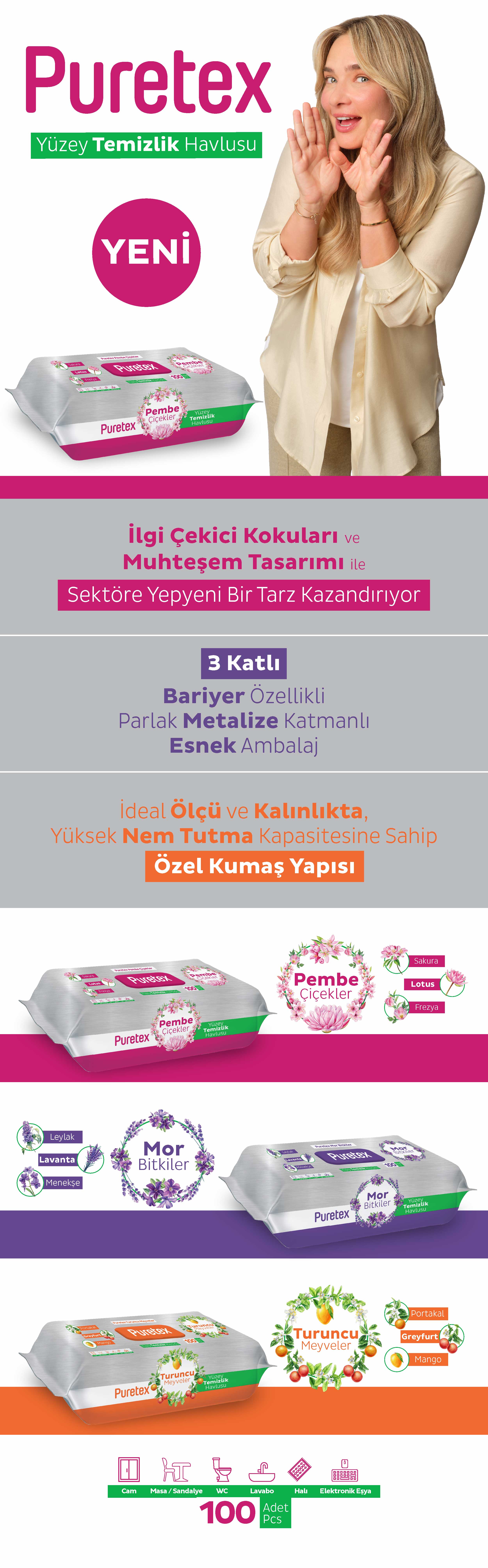 Puretex Yüzey Temizlik Havlusu Mor Bitkiler 6x100 (600 Yaprak)